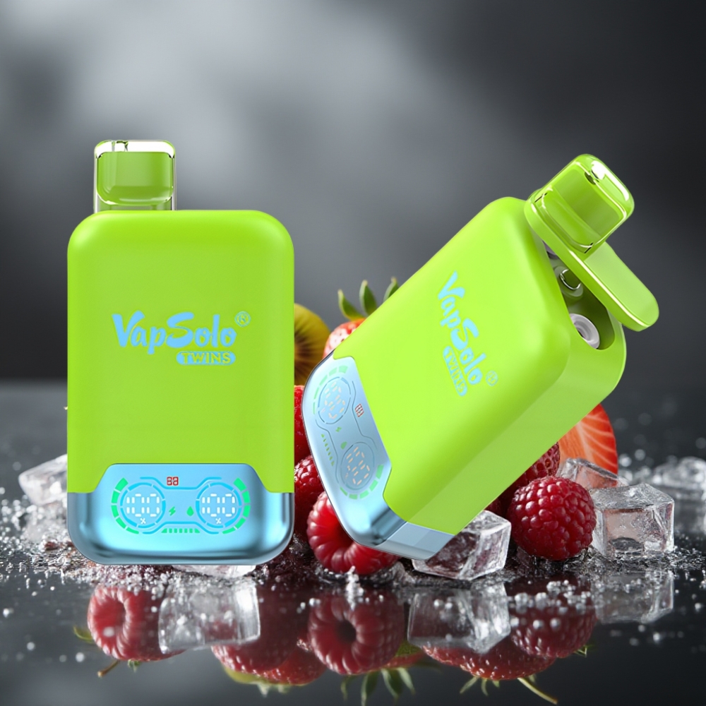 Vapsolo Twins 20000 Puffs Wegwerp Vape Aardbei Kiwi & Aardbei Framboos Kers IJs – 40 ml, 20mg/ml/50mg/ml, Type-C